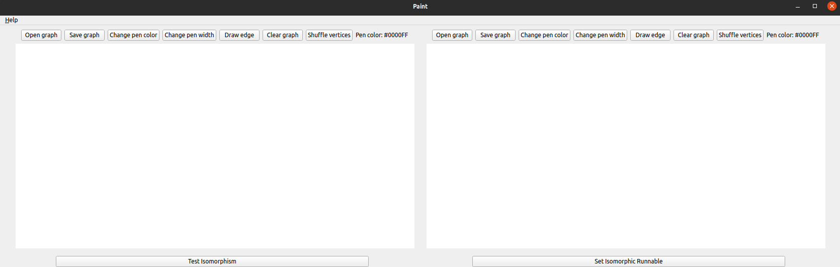 The application consists of two seperate canvas that allow the user to create graphs and test whether these are isomorphic.